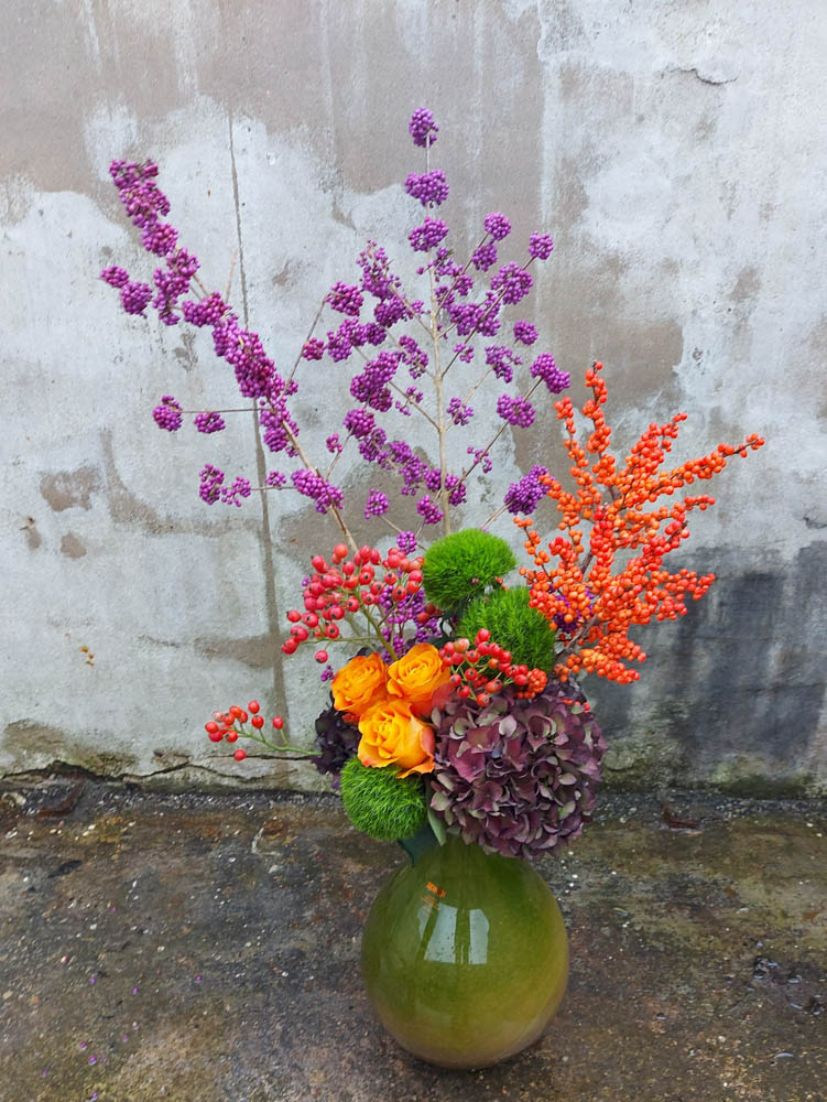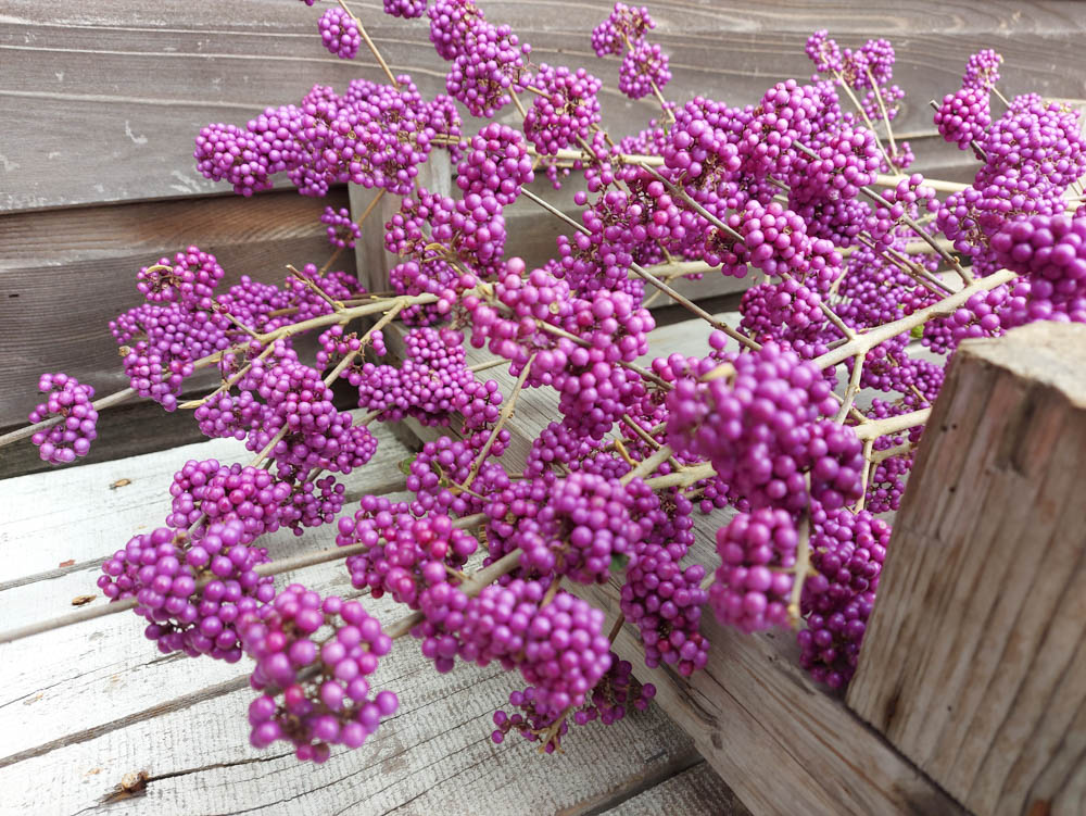 De unieke kleur en textuur van deze Callicarpa soorten voegen een onmiskenbare dimensie toe aan herfstboeketten en arrangementen.