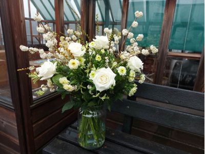 Het is belangrijk om een schone vaas te gebruiken. Vooral bij (lange) houtachtige takken kan het lastig zijn om water bovenin de steel te krijgen. Robert- Jan geeft als advies om warm water met heestervoeding te gebruiken.
