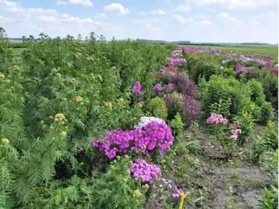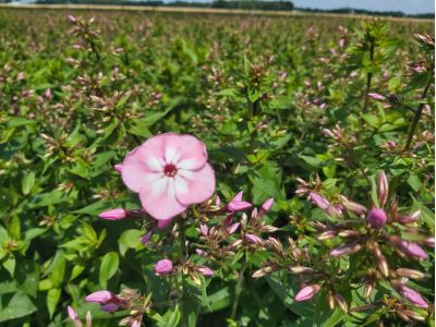 Maar… als er dan een soort uitkomt die aan alle eisen voldoet, dan wordt deze ook grootschalig uitgezet en groot in de markt gebracht. Momenteel heeft Daling twee prachtige soorten nieuwe Phloxen in productie, die hij in samenwerking met Goos Bartels veredeld heeft; De eerste soort is de ‘Pink Eyes’; een Phlox met een bijzondere kleur, waarvan het oog van de bloem er echt uit springt. Een mooie lengte, donkergroen spitsblad en een zware tak. De tweede soort is de ‘Brave Eyes’; deze heeft een hele mooie warme kleur, zware takopbouw en het gewas is mooi uniform.