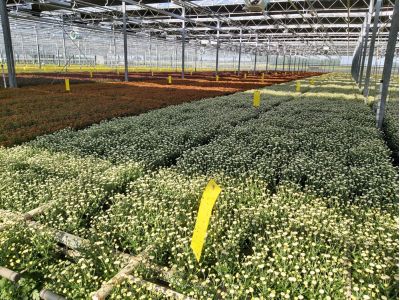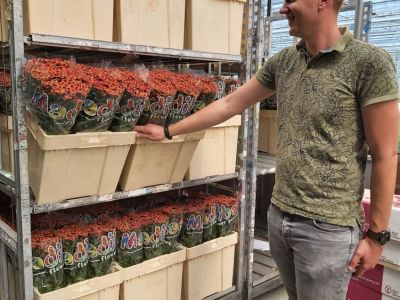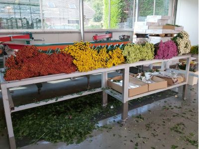 Als de stekken ongeveer 10cm zijn, komen ze bij de kweker en worden ze in de volle grond gepoot. Na het aanpoten duurt het ongeveer 8 weken voordat de bloemen gesneden worden. Het vak wordt dan in een keer leeg gesneden. Dit maakt de planning van Gerben ook zo belangrijk. Per week worden er zo’n zeven kappen gesneden. Een week later de volgende zeven. Door de strakke planning sluit de teelt van de drie kwekers ontzettend nauw aan en kunnen ze wekelijks hun gehele assortiment aanbieden en direct inspelen op de vraag uit de markt.