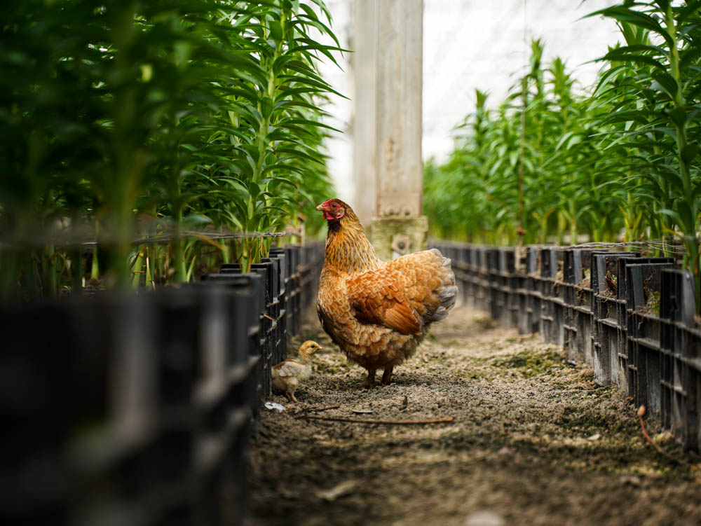 Naast het telen van lelies wordt er ook aandacht besteed aan allerlei dieren op de kwekerij. Zij zijn van groot belang voor een duurzame teelt. Het onkruid wordt gewied door de kippen, de katten houden de muizen weg uit de tuin en diverse insecten zijn inzetbaar tegen plagen en ziektes.