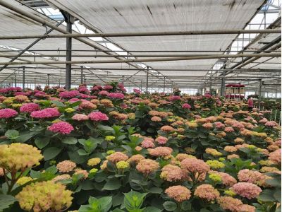 Het productieseizoen van de hortensia is van april tot november. Dit jaar heeft Edwin twee nieuwe soorten in productie waar hij hoge verwachtingen van heeft.