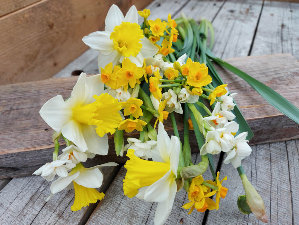 Narcissen combineren met andere bloemen blijft moeilijk. Voordat de bloemen de deur uit gaan, worden ze voorbehandeld om het slijm te verminderen, maar zodra de bloemen afgesneden worden, komt er opnieuw slijm vrij waar de meeste andere soorten bloemen niet tegen kunnen. Gebruik altijd een schone vaas met koud water en ververs het water regelmatig.