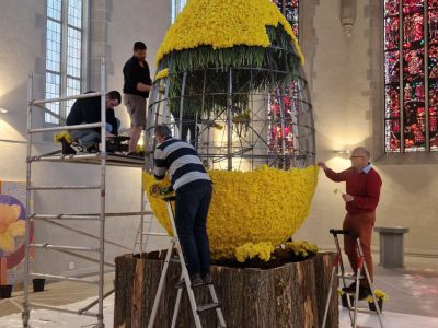 Een paasei, niet van chocola, maar van narcissen. Paul Fleischli van Blumen Krämer in Zürich ging opnieuw voor een notering in het Guinness Book of Records. Om deze notering te behalen moest hij zijn eigen record verbreken uit 1996: een ei, gemaakt van narcissen, hoger dan twee meter. En dát heeft hij gedaan. Samen met zijn team heeft Fleischli een Paasei gemaakt van maar liefst 3,5 meter hoog en met een doorsnede van 2,2 meter. Om het ei op te maken, zijn er 30.000 stelen Narcissus Bright Paradise van de Nederlandse kweker W.F. Leenen gebruikt. Dit bijzondere Paasei was te bezichtigen van 5 tot en met 10 april in de Wasserkirche midden in Zürich langs de rivier Limmat.