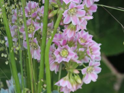 Rosy Bells and Ivory Bells® are a pure treat for bees and bumblebees. They constantly "leak" nectar, making them extremely attractive. This allium is actually a "nectaroscordum", but the species is ranked under allium. It is also called Bulgarian onion. These varieties are known to produce a lot of nectar. Just taste it! It is super sweet and tastes like a fresh flower.