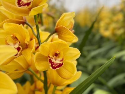 Cymbidiums originate from the mountainous regions of Asia, but the varieties we see today have been fully developed for ornamental value. Growing them requires both skill and patience. New plants are propagated from their own mother plants and take five years before producing their first flowers. At Koningshof Nursery, the young plants are grown organically in a separate nursery for the first few years.