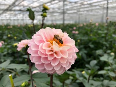 Not all types of dahlias that grow outside are also suitable for growing indoors. It is mainly important that the branches are nice, thick and sturdy. Most species only get these strong stems if they are out in the open. Here they can get all the nutrients from the soil and the sun light on the stems. H&BR van den Bosch grows a range of dahlias on 18,000 m² in the greenhouses that are suitable for this. Seven different varieties are currently being grown. The production of the flowers in the greenhouses can be controlled in detail by the use of climate control. Nearly 900,000 dahlias were cut in the 2018 season!