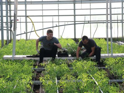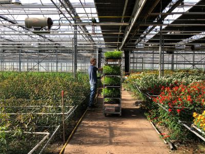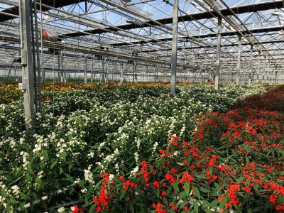 We visited the Googh nursery, where we were warmly welcomed by the brothers Aad and Gerard Bakker. They were very enthusiastic while telling about the nursery, which their father Koos Bakker started with his wife in 1952. They started with the cultivation of chrysanthemums, freesias and tulips. In 1966, in addition to these products, they also started growing the Euphorbia Fulgens. Unfortunately, the crop is very susceptible to fungi and after two years they decided to stop production of the Euphorbia. When the fungi were under control, Koos Bakker restarted the cultivation of this special product. Nowadays, the ground is steamed against fungi, a sustainable way to tackle the fungi problem. Before the cuttings are planted, the soil is steamed for four hours under plastic, at a temperature of about 80 degrees Celsius.