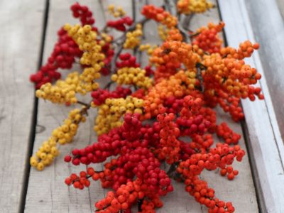 Ilex verticillata "Magical Daydream"; also a beautiful full branch with a lot of volume in a warm orange color. The "Magical Daydream" is very similar in color to the Wintergold, but the branches of the Daydream are somewhat more uniform.