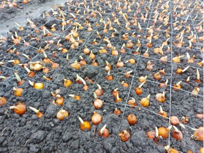 The bulbs are grown at a bulb grower. This is a two-year process. Each "mother bulb" produces two baby bulbs, called tangles. These tangles go back into the ground to continue growing for another year, the mother bulb is sold to the growers who force the flowers.