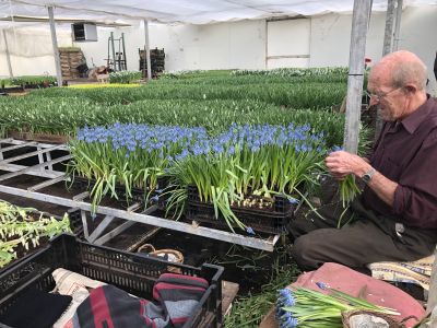 Koen has been growing Muscari for about 30 years. He started working as an employee for a grower who cultivated Muscari. He himself started officially 20 years ago. He grows Muscari from January until the end of April. In the summer months he has Zinnias in the greenhouse and outside he grows Cypresses.