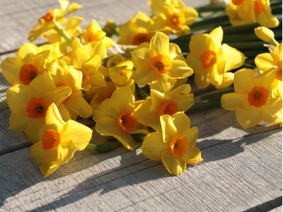Daffodils cultivated as a pot plant are generally species which grow short and compact. The cut varieties, on the other hand, need to be long so that they can be used in bouquets. However, a specific variety is not necessarily only suited for either pot plants or as a cut flower. You can use them for both purposes. 'Martinette' creates an early Easter atmosphere. It’s a strong daffodil in a cheerful yellow color. The multiple flowers provide a playful effect and therefore are great to be used as table decoration in small vases. In addition, they also spread a wonderful fragrance in the house. Real spring!