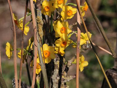 Daffodils are classified into different categories. The trumpet daffodil, the large-crowned daffodil and the short-nosed daffodil, are the most famous species. The Narcissus (Tazetta Grp) 'Martinette' belongs to the Tazetta group and can grow three to six flowers per stem. The petals often point backwards. The flower produces a very strong fragrance, which is also a characteristic for this group.