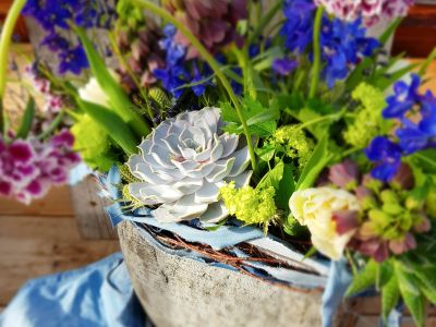 The different colors of the "ROOTLESS" Echeverias also fit very well in the popular "vintage" or "bohemian" wedding themes.