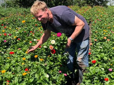 Even though Kees is extremely busy at the moment, he was happy to make time for us and took us on tour through his company. Arriving at a field full of blooming zinnias, we got the feeling that we were walking into a huge candy store. A huge mix of bright colors welcomed us and demanded our attention. It is no coincidence that zinnias are very popular with butterflies. In addition, these cheerful flowers have a lot of nectar and are therefore very attractive for bees.