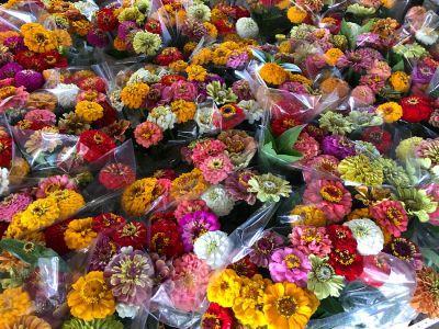 Everything is organized on two hectares of land outside and half a hectare of greenhouse. The zinnias themselves are grown both indoors and outdoors. Fortunately, the zinnia is generally a very easy crop. The very first shoots in June must be helped occasionally if some lice are spotted. There are still too few natural enemies to be found in the surrounding grass, but otherwise this beautiful product takes care of itself. Because Kees can grow in a responsible and sustainable way, he is MPS-A+ certified.
