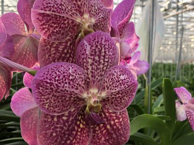 The company has both young and old plants. The oldest plants are around 20 years old. If a plant is too old, the quality of the flowers decreases. Then the choice is made to dispose of these plants. A plant produces an average of 2 to 3 branches per year; this is different per species. While you can controle the production of many flowers by changing the climate, this is very difficult at Vanda's. There are small adjustments that can be made, but you can't predict the results. It is therefore difficult to predict the number of branches of a certain species or when they will be ready which makes it a challenge to do any long-term planning.
