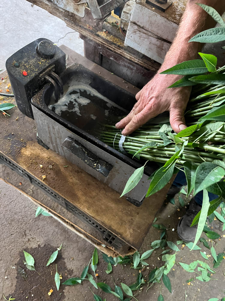 Growing Euphorbia fulgens demands care. Harvest begins when each spray has five open flowers. Then comes a crucial step: the freshly cut stems are immediately placed in boiling water. It may sound drastic, but it’s essential. The heat releases trapped air from the stems – you can literally see the bubbles rise. Only then can the flowers rehydrate properly. After this, they undergo a four-hour conditioning treatment before being sent to auction.