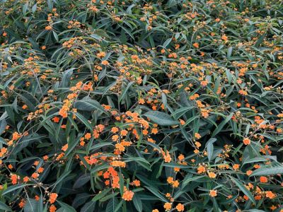 In his 14,000 m² greenhouse, Lex follows a seasonally driven growing schedule: in spring and summer, he cultivates spray chrysanthemums for Zentoo, and from mid-September to Christmas, his focus shifts entirely to Euphorbia fulgens. By pinching all the plants, they develop into richly branched spray varieties with sturdy stems – ideal for floral work. Lex grows five colours, each with its own charm and warm autumn character: Cognac Baron, Marielle, Sunstream, Queen of Orange, and Quicksilver.