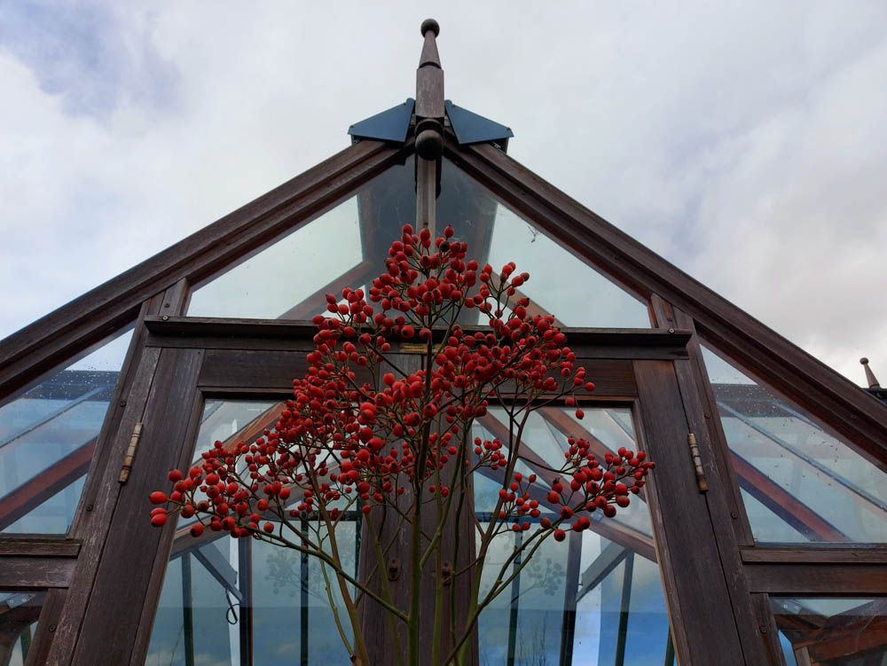 Meet the enchanting Rosehip “Magical Pasoa”! This striking variety has a fairly large cluster in the shape of a semicircular sphere. The hips are a beautiful mix of orange and red, with a more intense red color the longer they hang on the plant. What truly sets “Magical Pasoa” apart are the sturdy hips - they are rock hard and can be harvested well into December.