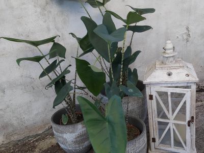 Originally, the Alocasia grows in the tropical rainforests of Southeast Asia. In the Netherlands the Alocasia is also called "elephant ear". This name is of course easily explained because of its large leaves.