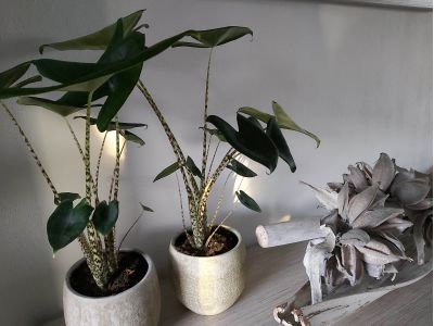 The Alocasia Cucullata and the Alocasia Zebrina fit very well into this trend with their large, beautifully drawn leaves. In addition, the Zebrina also has a beautiful motif on the petiole.