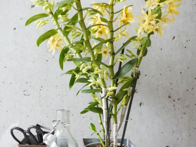 The Dendrobium nobilé is originally from Asia and Japan, where it grows on the trees like an epiphyte. It distinguishes itself from other orchid varieties by its special inflorescence. Most orchids flower at the top of the branch but the Dendrobium nobilé forms flower clusters in the armpits of the leaf. This means that it blooms over the entire length of the plant.