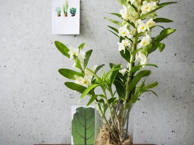 The most famous Dendrobium nobilé species is the Dendrobium nobilé "Apollon". This beautiful white orchid fits into any interior and also has a good shelf life. A plant with two branches can hold more than 50 flowers. Her bamboo-like appearance makes her even more suitable for the modern "urban jungle" style. She is graceful, exclusive, full of flour and also smells really nice; a playful, vibrant plant that you can enjoy for at least six to eight weeks.