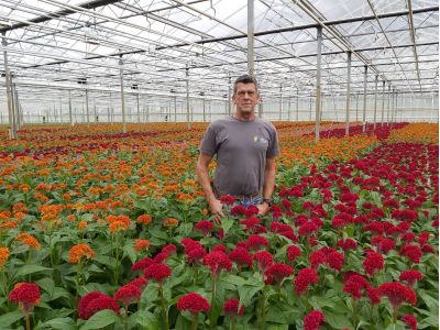 Feiko is de jongste uit een gezin met vier kinderen. Zijn vader overleed toen hij pas twaalf was, waarna één van zijn broers de kwekerij van hun vader over nam. Na een aantal jaar bij zijn broer gewerkt te hebben, is Feiko in 1989 voor zichzelf begonnen. In eerste instantie teelde hij Asters en Chrysanten. Een aantal jaar later kwam daar Celosia Plumosa bij, waarna de liefde voor dit gewas alleen maar gegroeid is. In 2006 heeft Feiko zich volledig gespecialiseerd in de Celosia. “De bloem is fantastisch mooi, de teelt is leuk, uitdagend en in deze bloem zit nog heel veel toekomst”, vertelt hij stralend!