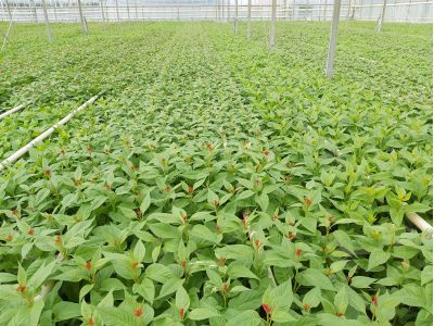 Evanthia veredelt de Celosia’s en produceert het zaad. Het zaad wordt eerst opgekweekt tot stekjes van ongeveer zes centimeter. Vervolgens gaan de plantjes naar Feiko, die ze dan direct in de volle grond poot. Het poten van de stekjes gebeurt allemaal met de hand. De stekjes zijn kwetsbaar en kunnen snel beschadigen.
