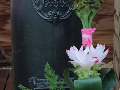 De Curcuma is een tropisch product met een lange rechte stengel met één blad en een kleurrijke extravagante bloem! Deze plant komt oorspronkelijk uit Thailand en houdt daarom ook helemaal niet van de kou. Als bloemist mag je deze bloem dan ook nooit in de koelcel zetten.