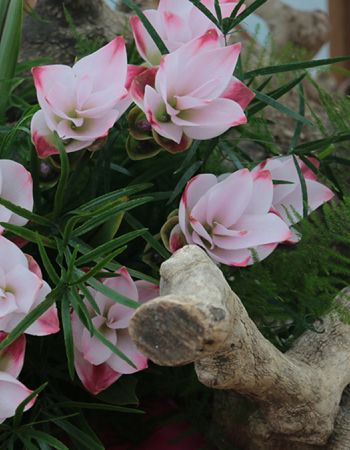 Het bijzondere van de Curcuma is dat niet de bloem zelf, maar het schutblad de sierwaarde van dit product bepaalt. Deze prachtige gekleurde bladeren functioneren als “huis” voor de echte bloemetjes, die aan de zijkanten groeien. Deze echte bloemetjes bloeien relatief gezien maar heel kort. Dit is goed terug te zien op de foto’s.