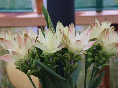 De bloem met haar lange stevige blad is van hoge sierwaarde is in een boeket. Verder hoef je dus geen blad te verwijderen voordat je de bloem op water zet. Zorg voor een schone vaas en vul deze met koud water. Snij de bloem schuin af voordat je hem in het water zet. Op deze manier kan je wel tot 4 weken genieten van je boeket Curcuma’s.