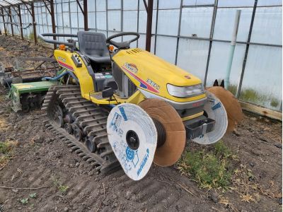 Ook in zijn ‘gereedschap’ zie je de technische achtergrond terug. Zo heeft hij zelf een soort tractor ontworpen en gebouwd, zodat hij folie en waterslangen kan uitrollen én gaten kan prikken waar de planten gepoot kunnen worden.