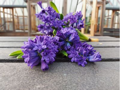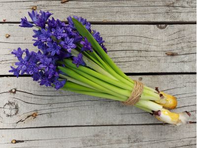 Als de bloemen worden gebost, worden ze eerst ontdaan van hun bol. Alleen het binnenste gedeelte van de bol blijft aan de hyacint zitten. Het gedeelte dat de bloemisten/consumenten eigenlijk altijd weer eraf halen. Dat is juist verkeerd! Dat kleine stukje bol zorgt ervoor dat de hyacint goed zijn water op kan nemen op de vaas. Hyacinten kunnen niet zo goed samen met andere bloemen in een vaas. Uit de bol komt namelijk veel slijm en dat zorgt ervoor dat andere bloemen minder goed water op kunnen nemen.