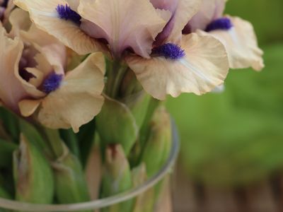 Iris germanica wordt ook wel de ‘baard-iris’ genoemd vanwege de baard die op de onderste bladeren groeit. De baard bestaat uit stuifmeeldraden die bedoeld zijn om hommels te lokken. De Irissen komen oorspronkelijk uit het Middellandse zeegebied en komen veel in Frankrijk voor. De iris heeft vaak meerdere bloemknoppen op één steel maar als de bloemen eenmaal open zijn bloeien ze niet heel lang. Het is daarom een extra bijzonder product, want hij laat zich maar even zien. Als het product geen baard heeft, is het ook geen echte baard-iris. Je kunt de baard op de foto’s heel goed zien!