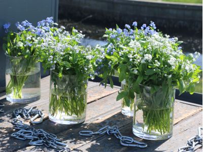 Myosotis is een teer product da veel drinkt. Een vaas gebruiken met schoon water is daarom noodzakelijk! Het blad mag niet in het water terecht komen, dus haal waar nodig wat blad van de stelen. Gebruik snijbloemenvoedsel in het water. Het is belangrijk om ze goed af te snijden met een scherp mes voordat je ze in het water zet.