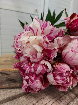 De nieuwkomer Candy Stripe is een bijzondere pioen. Zachtroze bloemblaadjes met een opvallende donkerroze streep. Echt een blikvanger. Perfect voor bruidswerk, bloemstukken of solo op de vaas. Het is een van de weinige snijpioenen met dit uiterlijk.