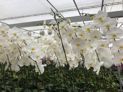 Het bedrijf teelt jaarrond zo’n 15/16 soorten. Daarnaast hebben ze nog zo’n 15 andere soorten op kleine schaal. Deze zitten nog in de testfases. Het duurt ontzettend lang om nieuwe soorten te testen en te ontwikkelen tot een jaarrond leverbaar product. Dat heeft alles te maken met het lange productieproces dat de snij-phalaenopsis nodig heeft.