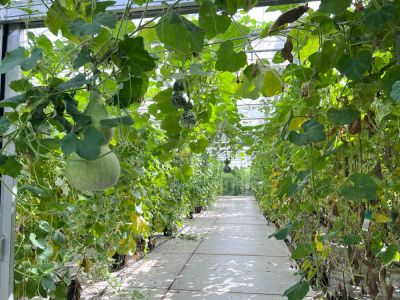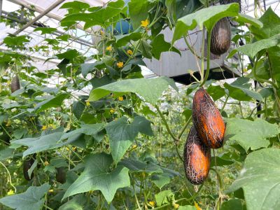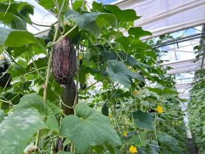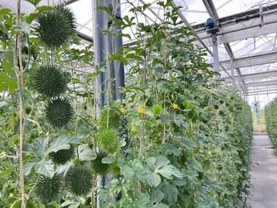 De teelt van alle vruchten vindt volledig plaats in de kas. Alle planten worden langs touwen omhoog geleid, zodat de vruchten vrij kunnen hangen en onbeschadigd groeien. Zowel de vruchtgewassen als de rankende soorten zoals diplocyclos worden zorgvuldig opgebonden.