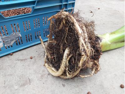 De planten van Marlies en Leo zijn 14 jaar oud. Het gewas is groot en indrukwekkend. De wortels zijn dik en groot, het lijkt of de planten uit hun pot barsten. Leo vertelde dat de wortel zelf eigenlijk maar heel dun is. De rest is het vlezige deel eromheen dat vooral wateropslag is. In de zomermaanden heeft de plant één keer in de week water nodig; in de winter maar ééns per maand. De plant heeft dan weinig activiteit en leeft op z’n reserves. Leo en Marlies meten het watergehalte van de plant met behulp van een weegschaal. Aan de hand van het gewicht van de plant weten zij of ze water moeten geven.