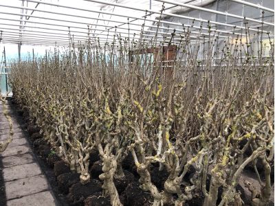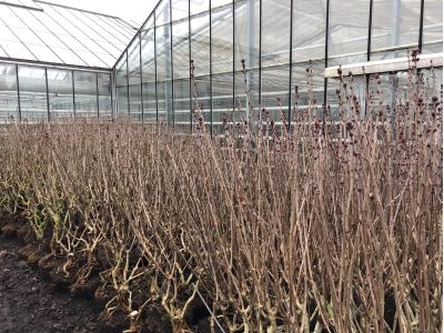 Om seringen te telen moet je een hele lange adem hebben. Het duurt namelijk zeker zes jaar voordat een jonge plant voor de eerste keer de reis kan maken naar de warme seringenkas, om daar vervolgens in bloei getrokken te worden. Een struik van 15 jaar is pas rendabel als je kijkt naar de verrichte arbeid en de opbrengst die deze struik genereert. Het voordeel van een seringenstruik is daarentegen dat ze wel meer dan 100 jaar oud kunnen worden. Hierdoor kunnen de struiken generatie op generatie doorgegeven worden. Jan heeft heel veel bijzondere soorten seringen op kleine schaal. Bijzonder door de bloeiwijze, dubbelbloemig of kleur of juist een bijzonder grote bloemnagel (zo wordt het enkele bloemetje genoemd van de bloemtros) of bijzonder door de sterke geur. Wij lieten onze blik vallen op de Syringa Vulgaris ‘Michel Buchner’, een dubbelbloemige ‘Milka-kleurige’ bloem met een goede houdbaarheid. Je hebt verschillende varianten van Buchner, maar deze soort sprong er met haar kleur écht tussenuit! Dit soort wordt van begin februari tot begin april geteeld. Het soort is lavendelpaars met een blauwe teint erin. De Buchner laat zich helemaal niet makkelijk telen, maar Jan houdt wel van een beetje uitdaging. Hij probeert dan ook soorten te zoeken die moeilijk te telen zijn, maar een mooie kwaliteit hebben. Zo blijf je als specialist onderscheidend!