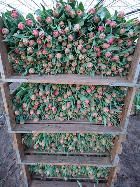 Nadat de tulpen geoogst zijn, wordt de bol verwijderd, de tulpen gebost en verpakt om naar de veiling te gaan.
