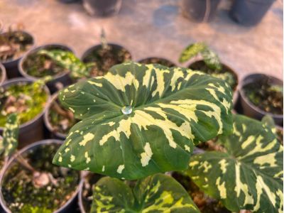Hoogwaardige kwaliteit producten leveren gaat boven alles. En dat begint bij de Caladium al bij het poten van de knollen. Waar de meeste kwekers één knol per pot poten, start Richplant al met het poten van twee Caladium knollen in een pot. Op deze manier groeit er een mooie compacte, volle plant. Het is afhankelijk van de hoeveelheid licht en de warmte hoe snel de plant groeit. In eerste instantie worden de planten dicht bij elkaar gezet, met een hoge luchtvochtigheid, waardoor er een goede wortelbasis ontstaat.