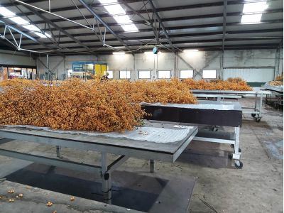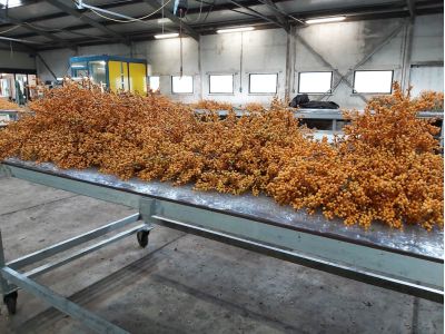 Ilex wordt verkocht zonder blad. De sierwaarde ligt tenslotte bij de bes. Daarbij verdampt het vocht snel uit het blad, waarna het blad het vocht uit de bes haalt. Dit gaat ten koste van de houdbaarheid van het product. Het blad wordt verwijderd door middel van broeien. De takken worden op tafels gelegd waarover zwart plastic en noppenfolie wordt gespannen waaronder het flink warm en vochtig wordt. Na tien dagen valt het blad eraf en kan het product verwerkt worden tot bossen.