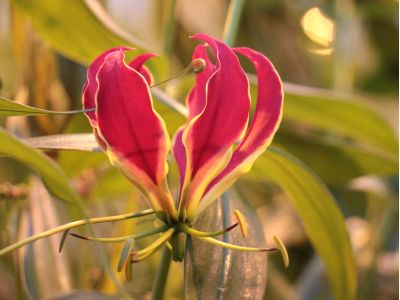 Dit is de meest bekende Gloriosa. Zij staat bekend om haar prachtige diep roze/rode bloembladeren overlopend naar geel in het hart.