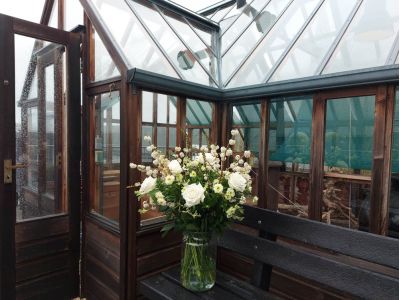 Het is belangrijk om een schone vaas te gebruiken. Vooral bij (lange) houtachtige takken kan het lastig zijn om water bovenin de steel te krijgen. Robert- Jan geeft als advies om warm water met heestervoeding te gebruiken.