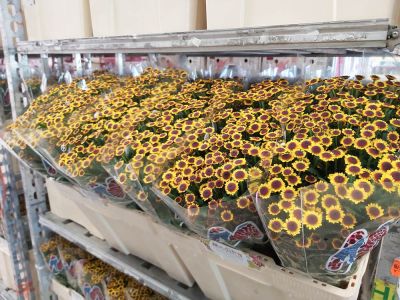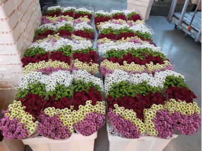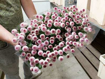 Als de stekken ongeveer 10cm zijn, komen ze bij de kweker en worden ze in de volle grond gepoot. Na het aanpoten duurt het ongeveer 8 weken voordat de bloemen gesneden worden. Het vak wordt dan in een keer leeg gesneden. Dit maakt de planning van Gerben ook zo belangrijk. Per week worden er zo’n zeven kappen gesneden. Een week later de volgende zeven. Door de strakke planning sluit de teelt van de drie kwekers ontzettend nauw aan en kunnen ze wekelijks hun gehele assortiment aanbieden en direct inspelen op de vraag uit de markt.