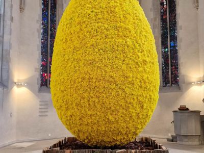 Een paasei, niet van chocola, maar van narcissen. Paul Fleischli van Blumen Krämer in Zürich ging opnieuw voor een notering in het Guinness Book of Records. Om deze notering te behalen moest hij zijn eigen record verbreken uit 1996: een ei, gemaakt van narcissen, hoger dan twee meter. En dát heeft hij gedaan. Samen met zijn team heeft Fleischli een Paasei gemaakt van maar liefst 3,5 meter hoog en met een doorsnede van 2,2 meter. Om het ei op te maken, zijn er 30.000 stelen Narcissus Bright Paradise van de Nederlandse kweker W.F. Leenen gebruikt. Dit bijzondere Paasei was te bezichtigen van 5 tot en met 10 april in de Wasserkirche midden in Zürich langs de rivier Limmat.